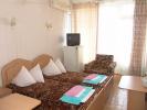 - 2х местный однокомнатный номер Стандарт. В номере: две раздельные кровати, набор мебели, телевизор, холодильник. Санузел – душ, туалет, умывальник. Балкон, вид на море или горы. Предусмотрено одно дополнительное место – раскладушка (для детей до 16 лет). Площадь номера – 18 кв. м.